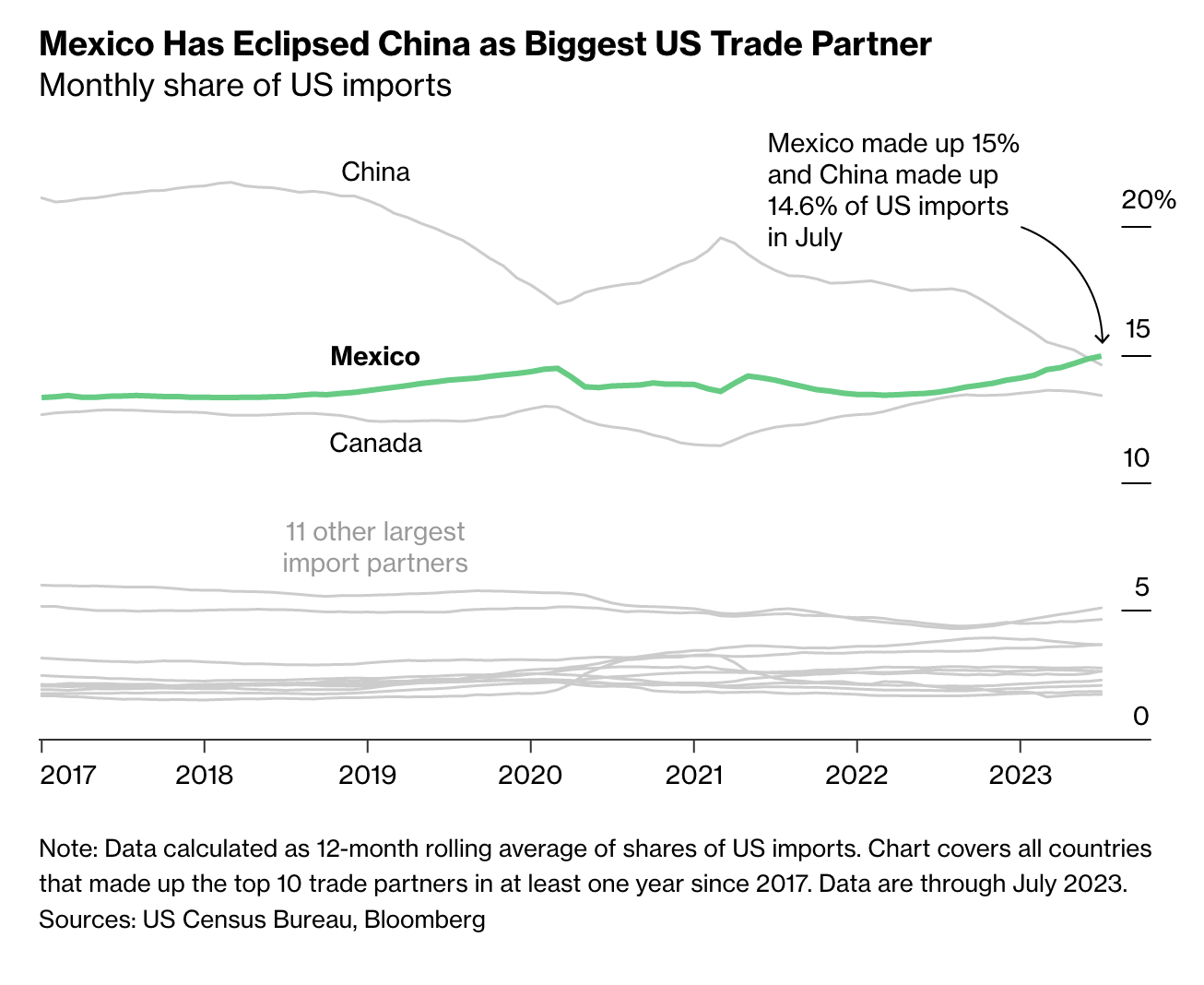 This week, we are thinking about trade flows. Mexico has replaced China as America’s largest trade partner. What does this mean for the future of US-China relations?