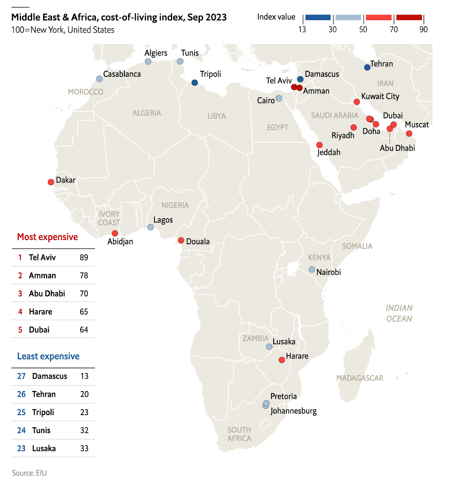 This week, we are thinking about the cost of living. With the rise in remote work, cost of living concerns hit differently. The Economist does a great job charting the cheapest and most expensive cities to call home.
