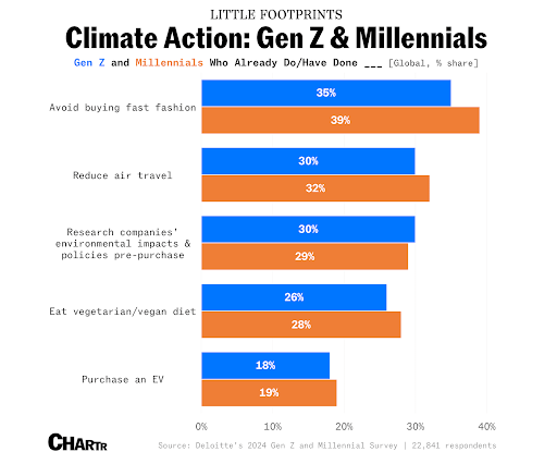 This week, we are thinking about climate change. Younger people appear to be turning their words into action when it comes to taking steps to mitigate their role in climate change. But is it enough?