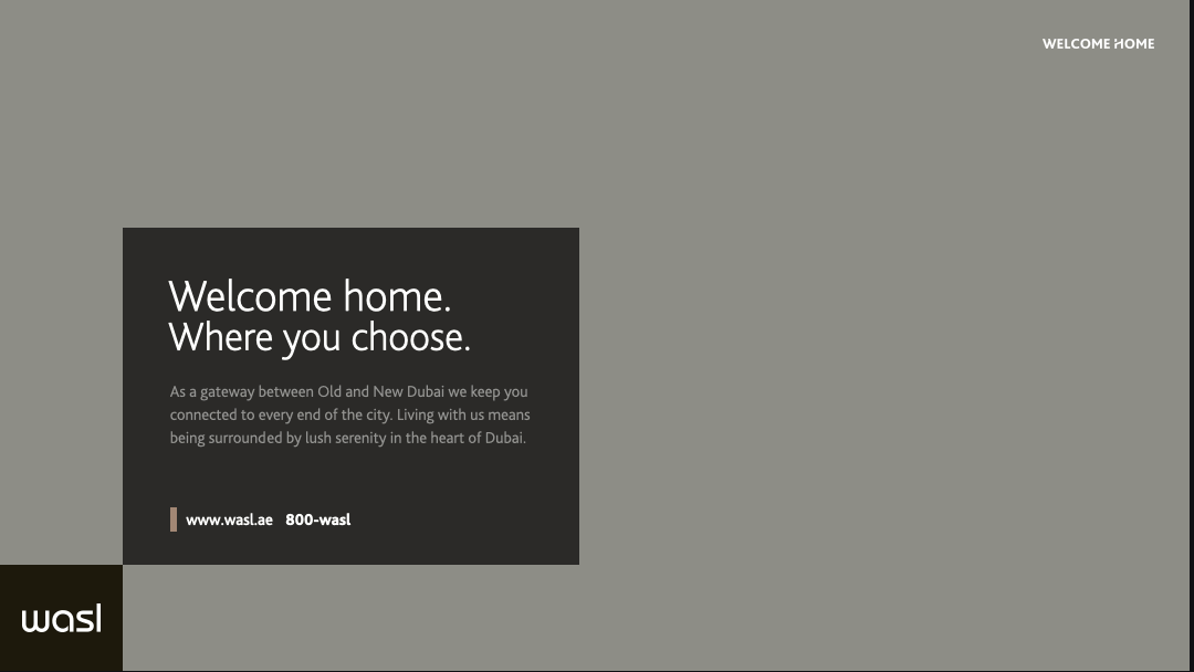Once the strategy was defined, we turned to design. Our goal was to retain as much of the visible and intangible equity built by Wasl over decades, while simplifying, elevating and capturing the core essence with deliberate minimalism. Their brand identity was refined leading with typographic detail, while letting go of a color system and symbol that no longer cohesively communicated the sheer scale and width of the brand’s portfolio.