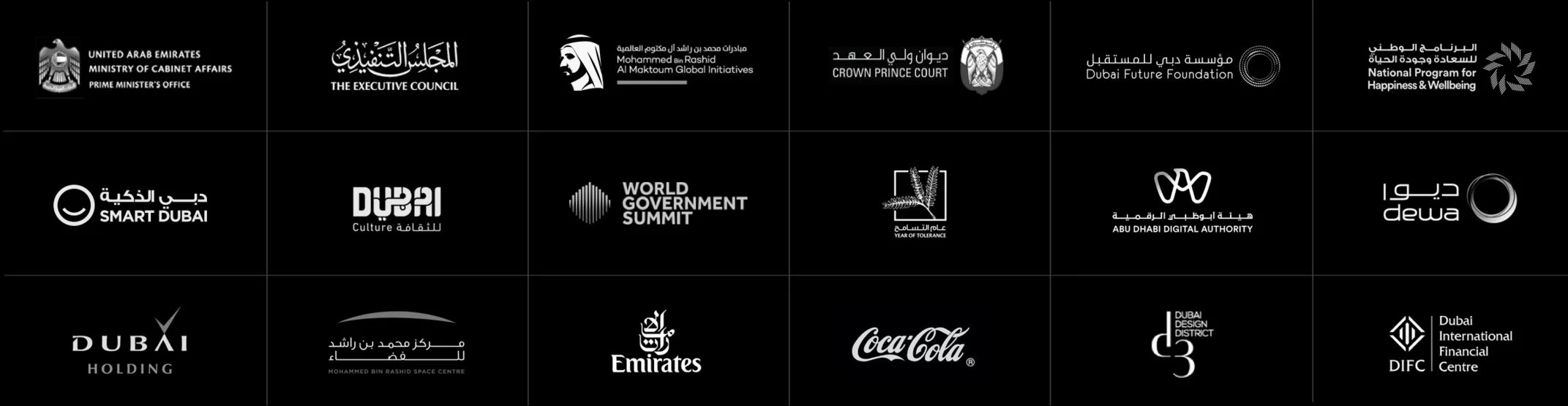 We created Dubai's first national tourism brand, helped build the Smart Dubai initiative, co-authored the Happiness Agenda, built Dubai's Public Art Strategy, helped develop the Dubai Blockchain Strategy, branded UAE's Mission to Mars, trained over 1000 leaders in design thinking, help lead digital transformation for Abu Dhabi Government and have invested in over 50 ventures.